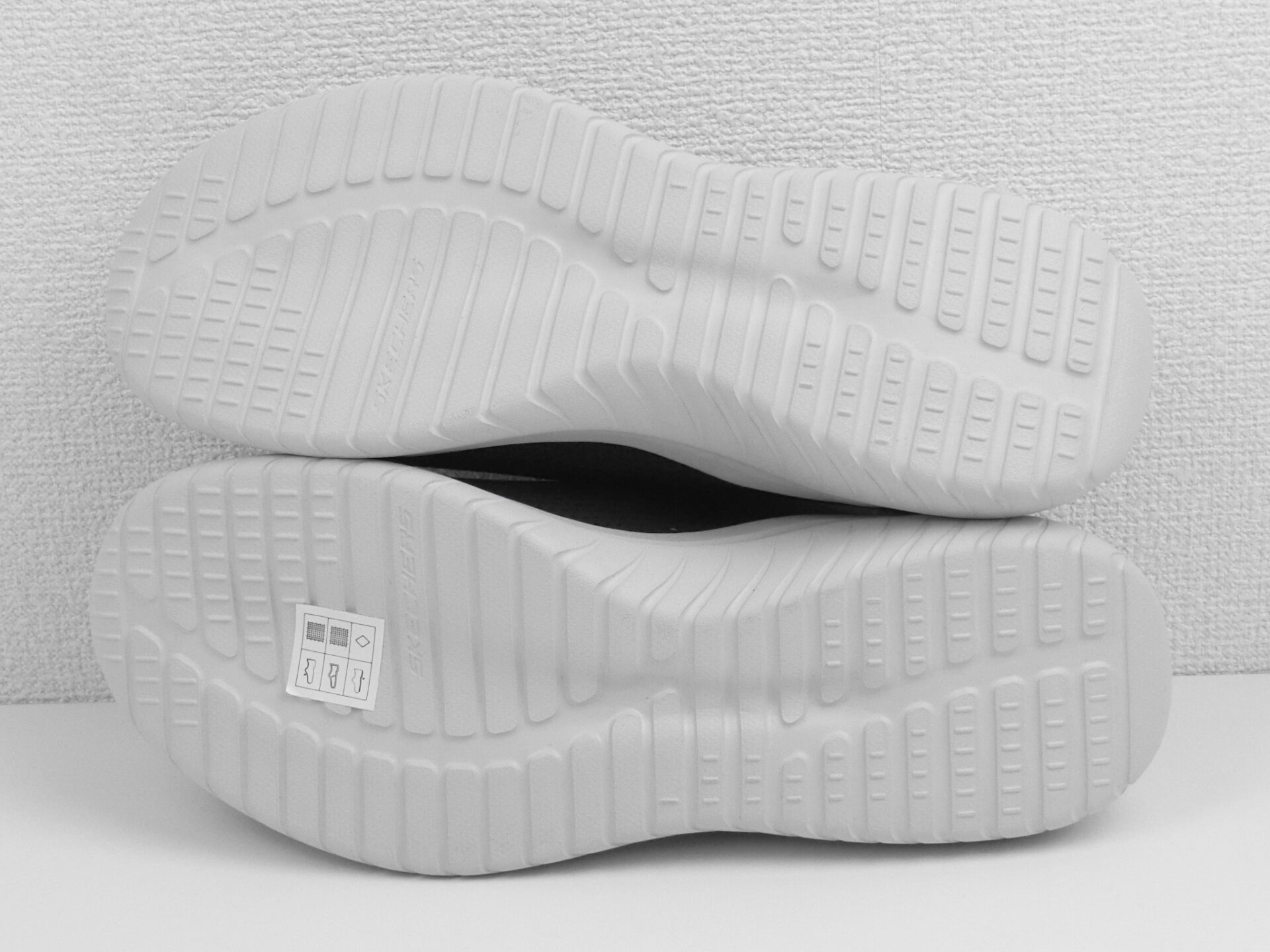 サイドにはスケッチャーズの「S」ロゴがさりげなく配置され、シンプルなデザインのアクセントになっています。